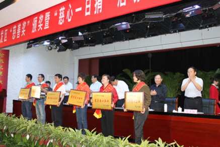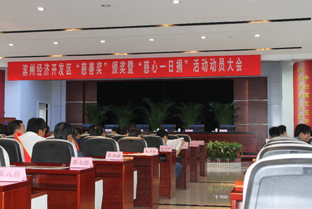 濱州傳媒網(wǎng)訊(記者郭瑩 通訊員李華)2011年5月26日上午,開發(fā)區(qū)隆重舉行2010年度“慈善獎(jiǎng)”頒獎(jiǎng)和2011年度“慈心一日捐”活動(dòng)動(dòng)員大會(huì)。會(huì)議由開發(fā)區(qū)黨工委委員、主任助理、公安分局局長(zhǎng)張愛國(guó)同志主持,黨工委書記、管委會(huì)主任姚和民同志到會(huì)并作重要講話,會(huì)議表彰了2010年度為慈善事業(yè)做出突出貢獻(xiàn)的單位和個(gè)人,區(qū)黨工委委員、管委會(huì)副主任、慈善總會(huì)會(huì)長(zhǎng)馬景澤同志接收了7家企業(yè)的捐贈(zèng),其中,福豪鋼材市場(chǎng)管理有限公司認(rèn)捐基金200萬元,海得曲軸有限責(zé)任公司認(rèn)捐基金200萬元,華晨新型建材有限公司認(rèn)捐基金100萬元,中大兆華牧業(yè)科技有限公司認(rèn)捐基金100萬元,金河房地產(chǎn)開發(fā)有限公司認(rèn)捐基金100萬元,